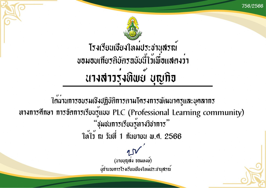 สถานศึกษา : โรงเรียนเชียงใหม่ประชานุสรณ์
