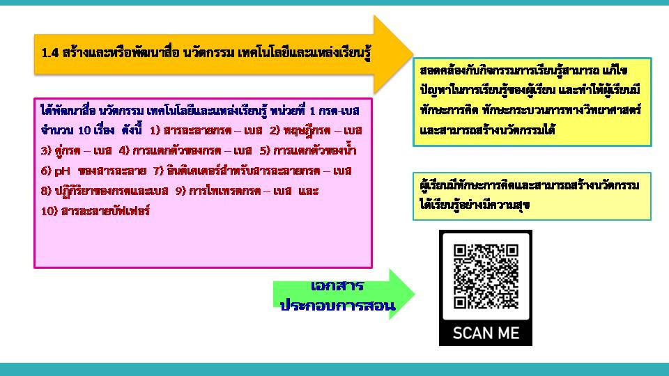 เอกสารประกอบการสอน หน่วยการเรียน กรด เบส ด้วยวิธีการสอน ตามแบบวัฎจักรการเรียนรู้ 5E ผ่านการดำเนินการรวมกลุ่ม PLC และเทคโนโลยี ของนักเรียนชั้นมัธยมศึกษาปีที่ 5
