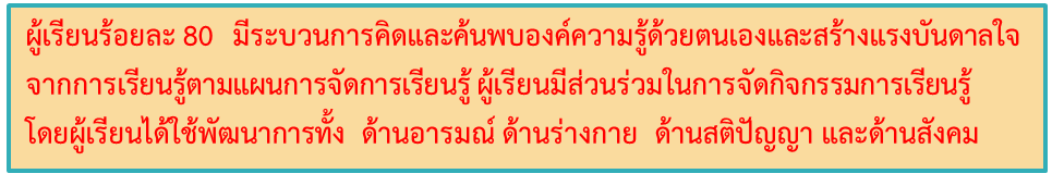 ส่งผลให้ผู้เรียนร้อยละ 80 มีกระบวนการคิดและค้นพบองค์ความรู้ด้วยตนเองและ